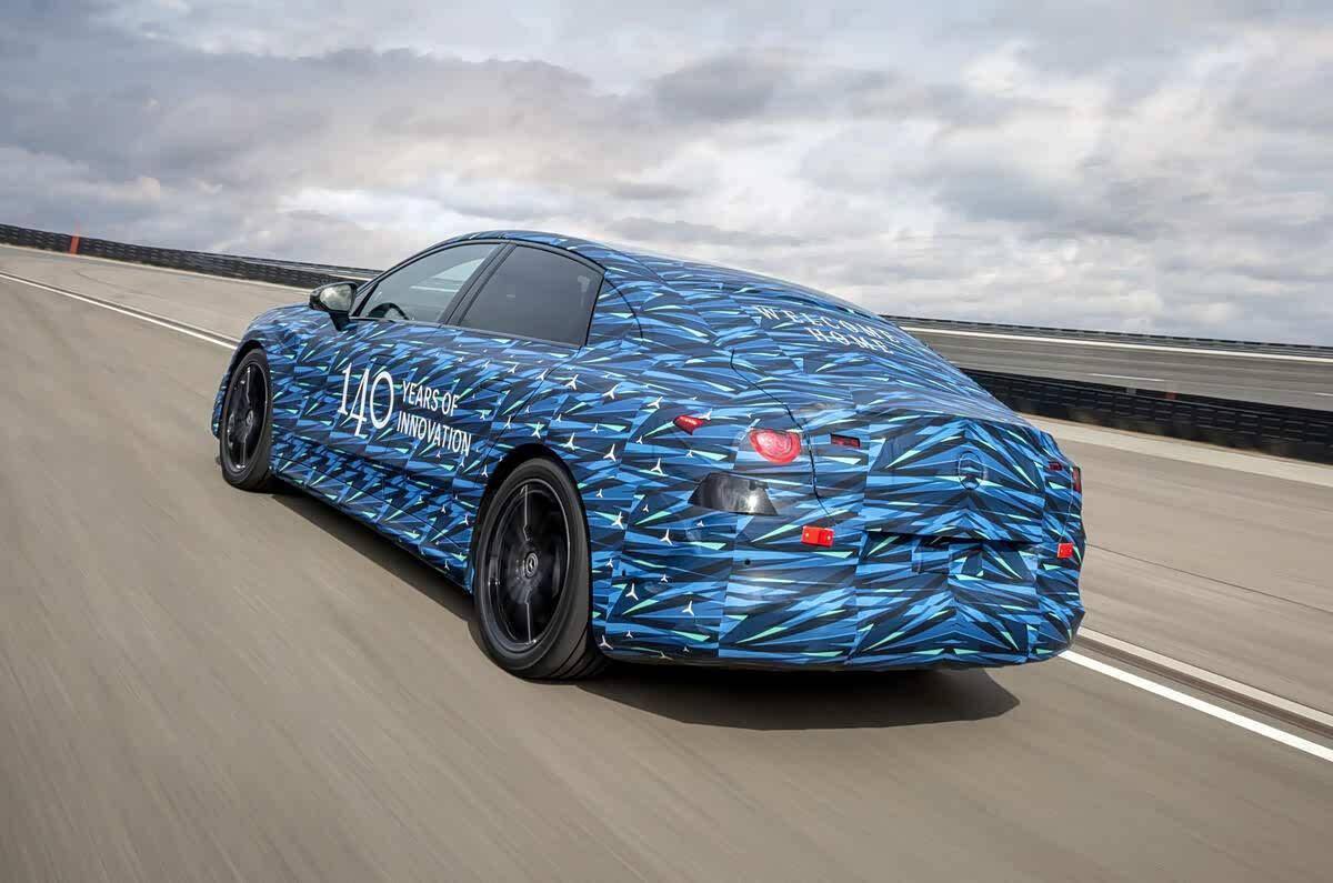 目前官方仅爆出了原型车,虽然有着重度伪装,但依旧可以看到很多信息,比如新车的大灯组造型非常狭长,内部依旧有奔驰最新的三叉星辉LED样式,辨识度不言而喻。当然,作为一台纯电车型,新车自然采用了封闭式格栅的设计,仅仅在前包围中部设置了散热开口。